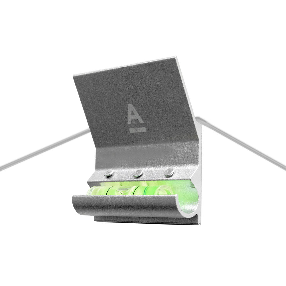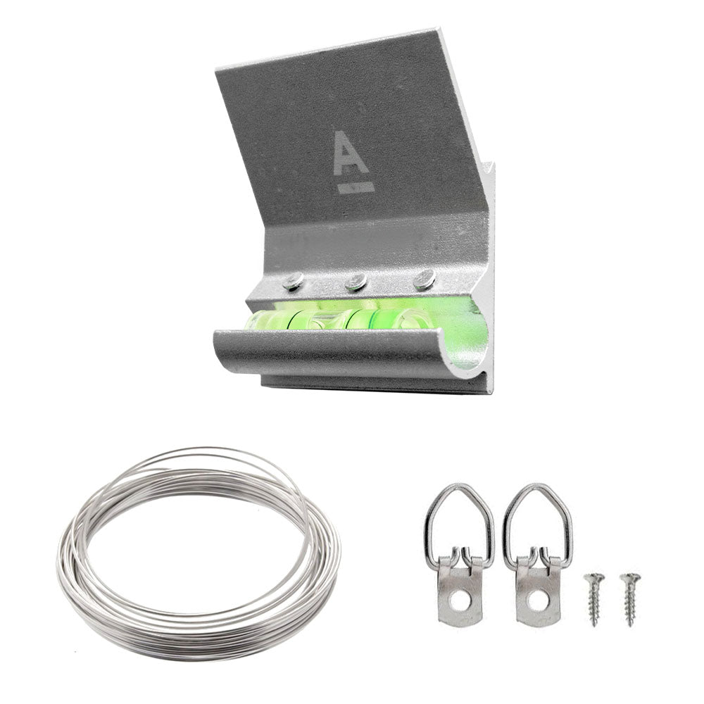 Includes a custom wall hook with liquid level, giving you everything you need to hang on a wall.